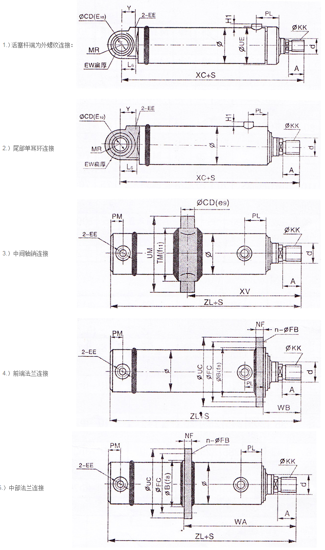 活塞桿端為外螺紋連接的尺寸表